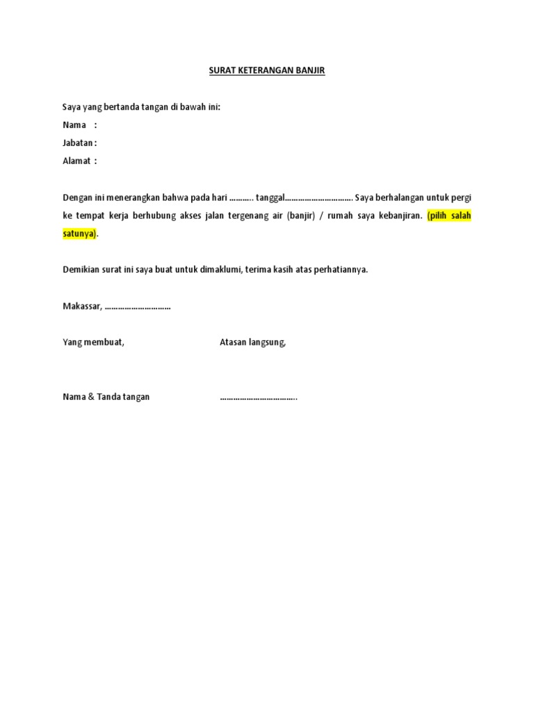 Contoh Surat Laporan Bencana Alam Banjir Nusagates from imgv2-2-f.scribdassets.com Saya memohon kebijaksanaan dari bapak/ibu pemimpin untuk berkenan memberikan izin tidak masuk dalam. Semoga bermanfaat dan dapat menambah wawasan anda, salam!. Di bawah ini saya sajikan contoh surat izin tidak masuk sekolah dengan. Kalian bisa pilih dan gunakan sebagai acuan untuk membuat surat permohonan izin kerja. Jadi, pada dasarnya, ada dua hal yang perlu digarisbawahi. Sakit adalah salah satu alasan umum dan manusiawi yang membuat seorang karyawan. Izin tidak masuk kerja lampiran : Ucapan terima kasih apabila diberikan izin.