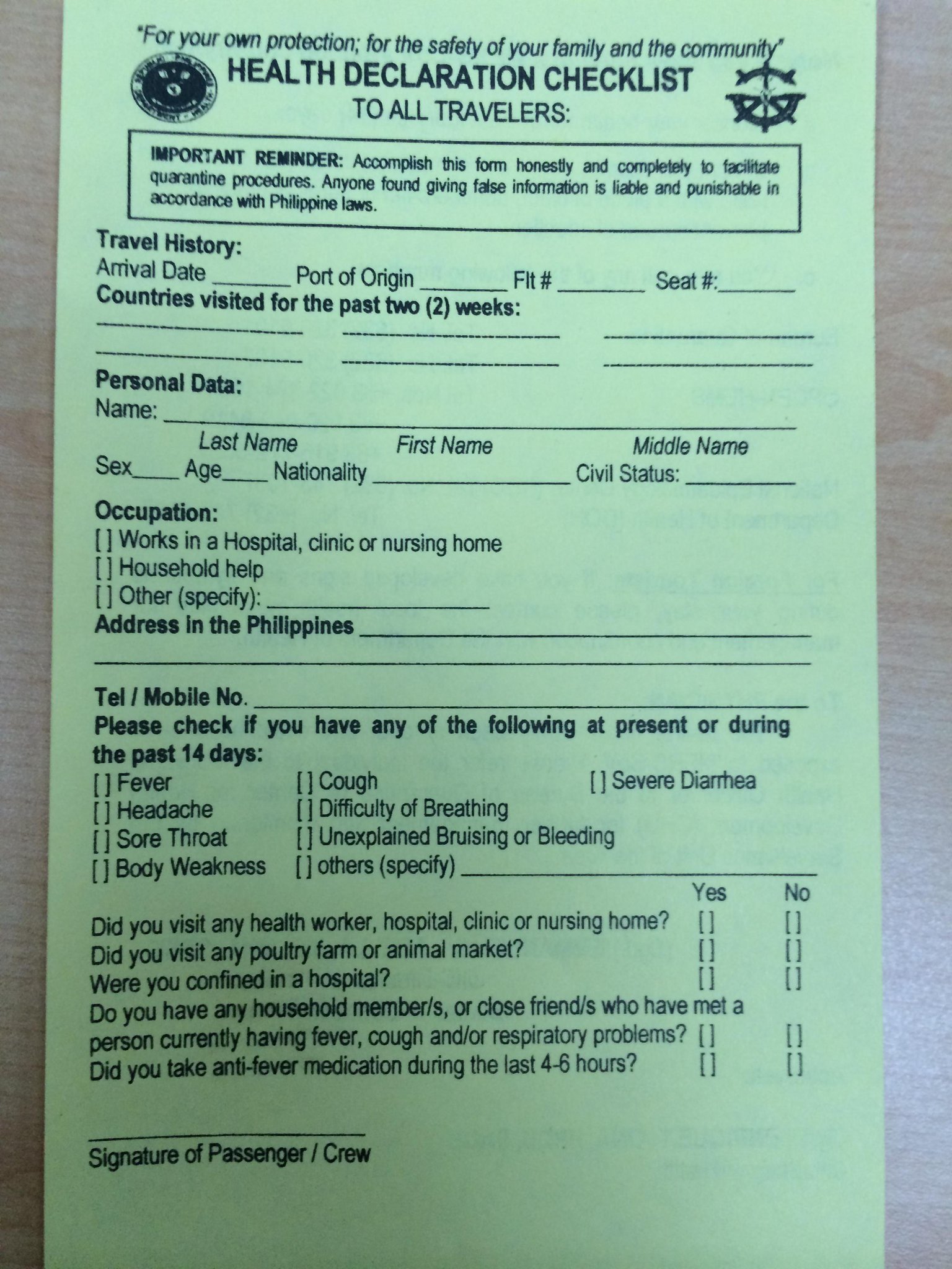 Health and travel declaration form philippines.
